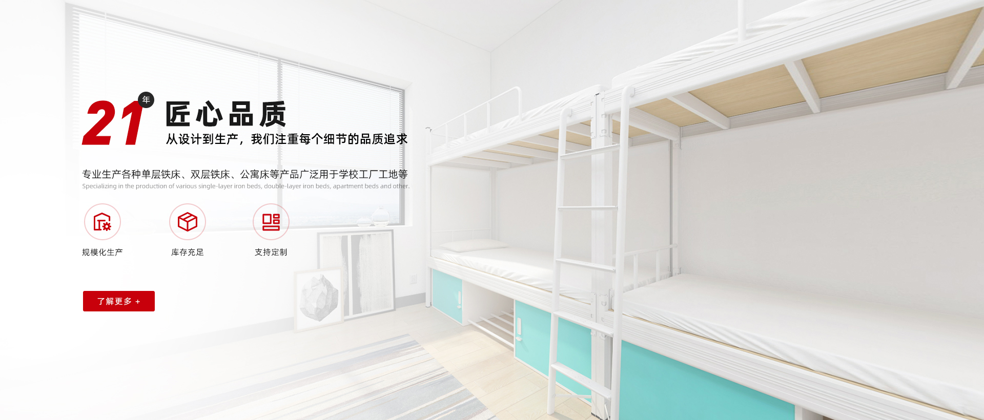 選擇冠迪五金鐵床的 理由 現代化生產制造企業,為超過1000企業單位提供公寓宿舍鐵床鐵柜整體解決方案